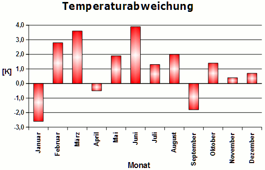 Januar -4,8 9,3 -17,3 89,5 1024,5 4,9 SSW 54,7 41,40 Februar 1,9 16,2 -6,2 87,5 1018,2 5,1 SSW 51,5 42,60 März 6,1 21,7 -3,3 76,4 1017,4 6,1 S 51,5 73,20 April 5,9 20,8 -5,2 75,5 1019,5 4,4 NNW 35,4 85,00 Mai 12,5 29,1 0,3 76,5 1016,0 4,2 NO 32,2 78,40 Juni 17,5 31,2 2,6 70,5 1013,6 4,4 W 41,8 100,00 Juli 17,0 29,6 6,9 79,1 1014,4 4,2 SW 51,5 203,00 August 17,2 29,7 6,2 81,3 1016,3 3,4 WSW 66,0 125,80 September 10,5 22,4 0,2 87,6 1016,0 3,3 SW 40,2 65,00 Oktober 9,1 24,1 -4,3 86,5 1021,3 3,9 WSW 48,3 85,00 November 2,6 14,7 -5,6 92,8 1017,5 4,5 SW 45,1 119,00 Dezember -0,5 10,2 -8,4 92,6 1017,6 5,3 SW 51,5 79,40