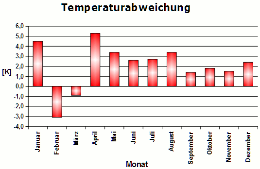 Januar 2,3 9,3 -4,4 93,0 1015,6 6,6 SSW 56,3 173,60 Februar -4,0 4,8 -16,2 87,5 1016,8 5,2 OSO 43,5 28,80 März 1,6 13,0 -13,6 83,9 1005,1 5,2 SSO 38,6 40,40 April 11,7 24,9 -2,1 66,5 1012,2 5,3 SSO 45,1 22,80 Mai 14,0 26,2 4,6 77,9 1013,5 3,8 NO 56,3 98,40 Juni 16,2 26,8 3,0 77,6 1015,2 3,1 NNO 43,5 104,60 Juli 18,4 32,0 7,4 70,5 1014,2 2,8 NO 32,2 43,80 August 18,6 31,8 3,3 72,1 1015,5 3,2 NNW 41,8 56,00 September 13,7 27,3 0,2 77,5 1020,2 3,0 NNW 48,3 47,20 Oktober 9,5 23,0 -1,4 82,7 1017,3 3,1 SSO 37,0 42,40 November 3,7 16,5 -4,9 92,2 1017,5 3,9 SO 43,5 15,00 Dezember 1,2 10,4 -8,3 94,1 1021,7 5,4 SW 48,3 122,40